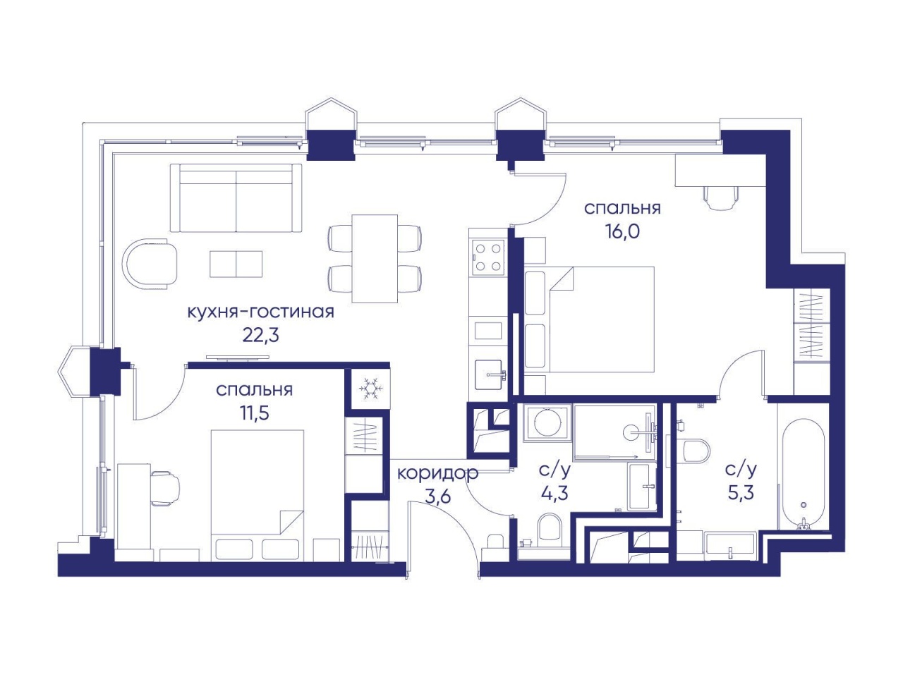 | Этаж | 3 из 19 | Площадь кухни | 22.3 м2 |