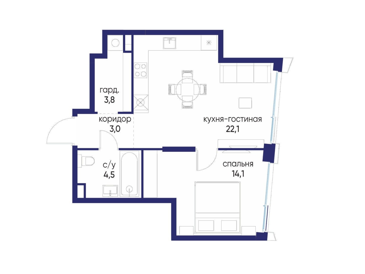 | Жилая площадь | 14.1 м2 | Площадь комнат | 14.1 м2 |