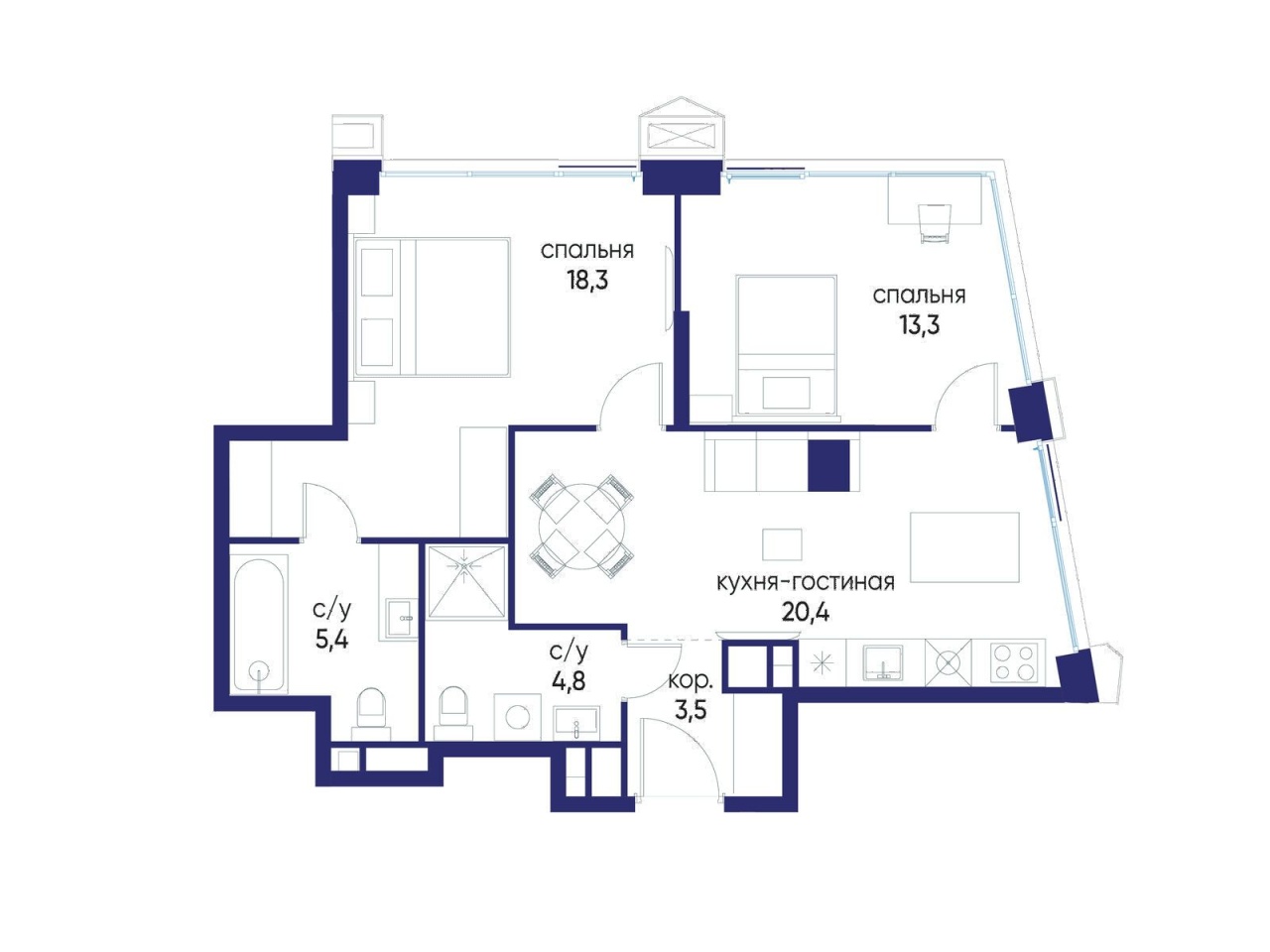 | Отделка | Черн. отделка | Тип санузла | Два |