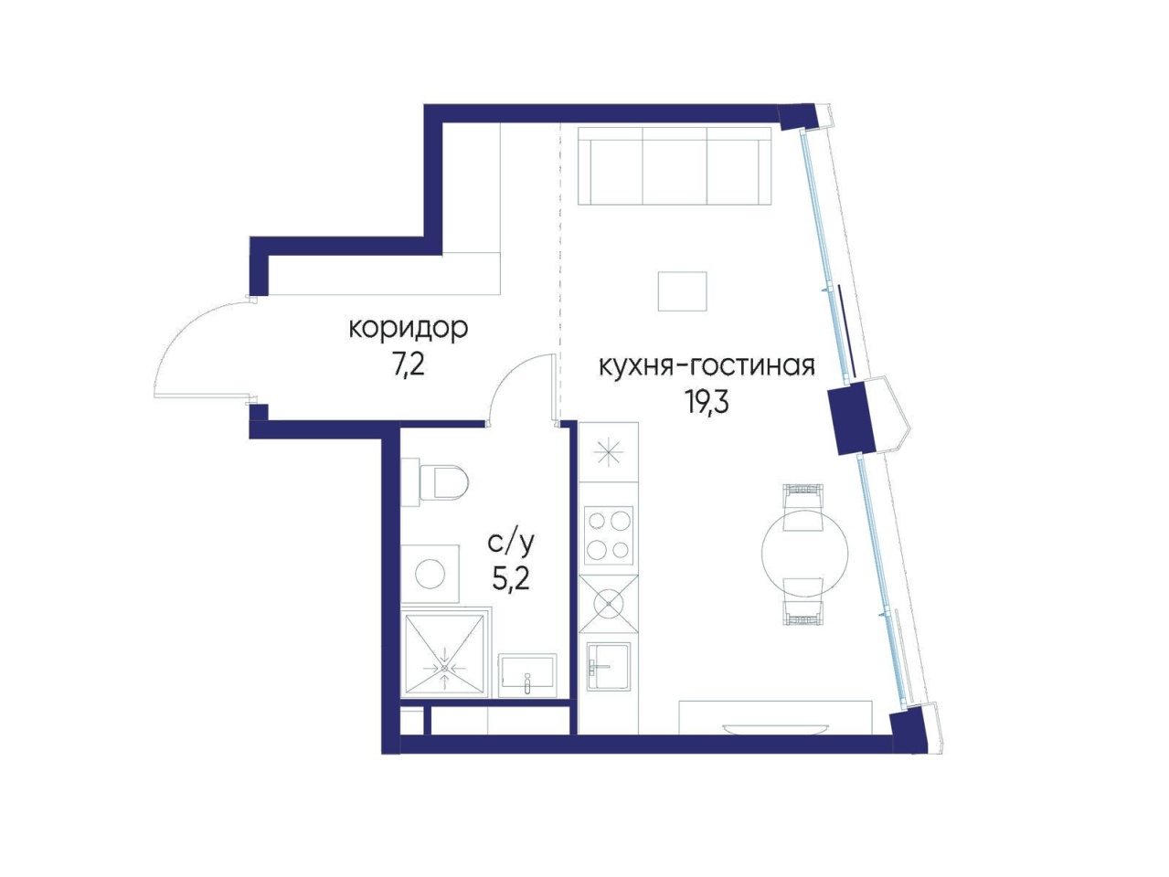 | Площадь кухни | 5 м2 | Жилая площадь | 14.3 м2 |