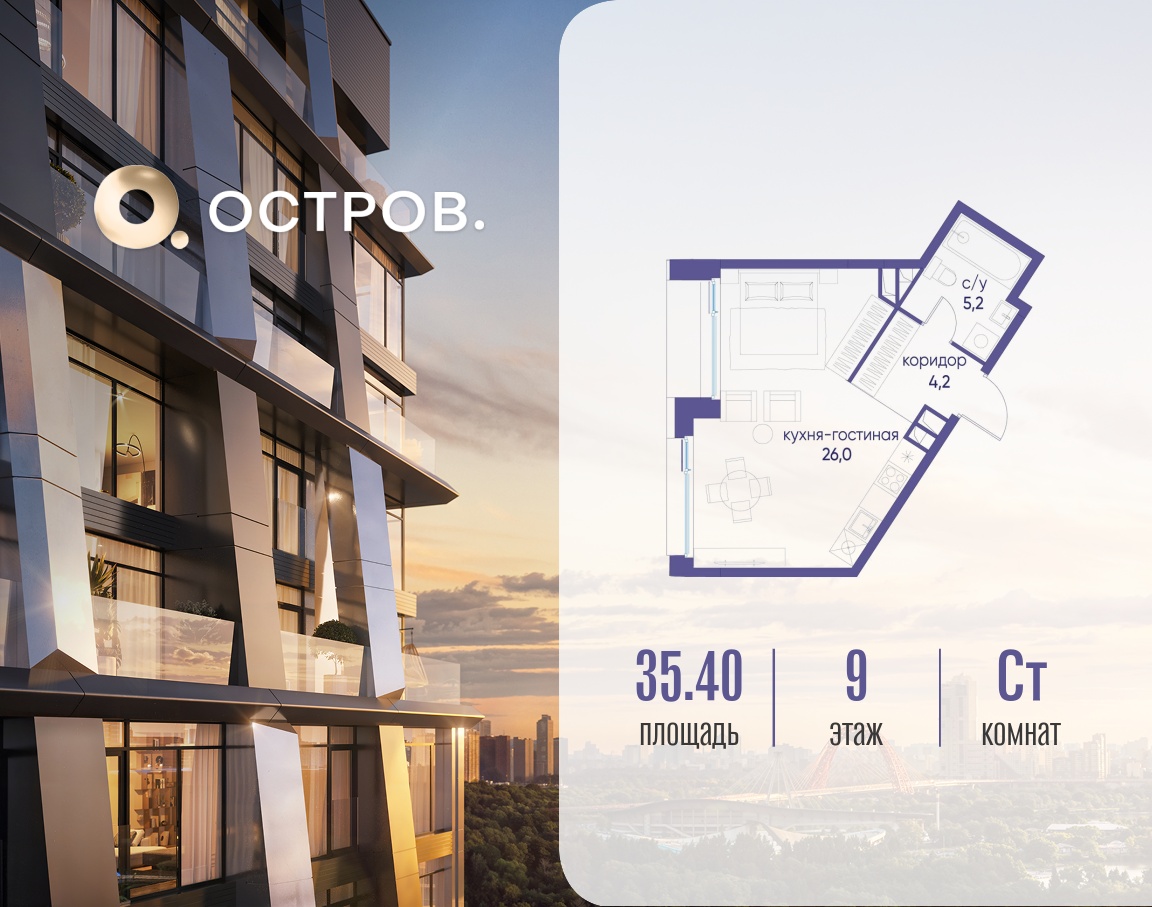 | Тип объекта | Новостройка | Комнат | 1 |