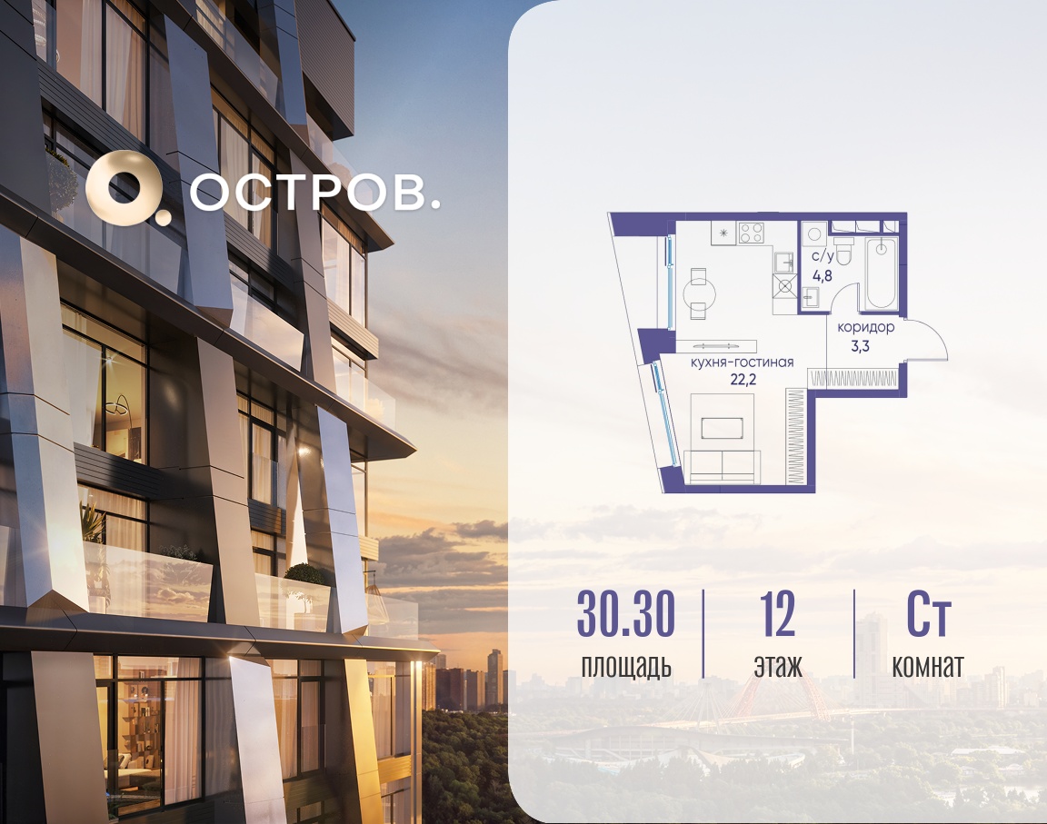 | Тип объекта | Новостройка | Комнат | 1 |