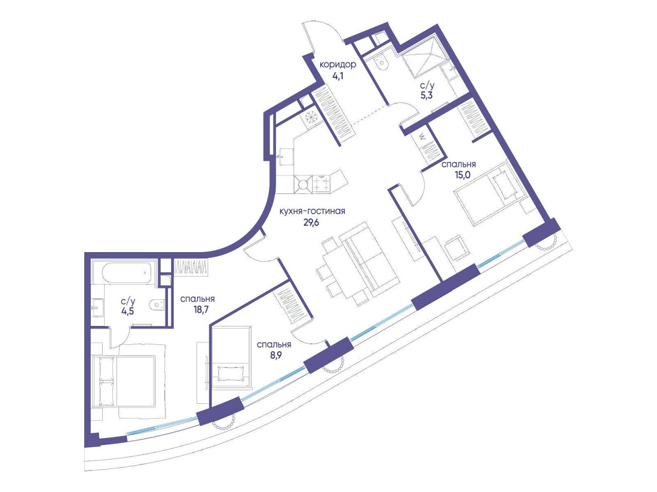 | Этаж | 18 из 21 | Площадь кухни | 29.6 м2 |