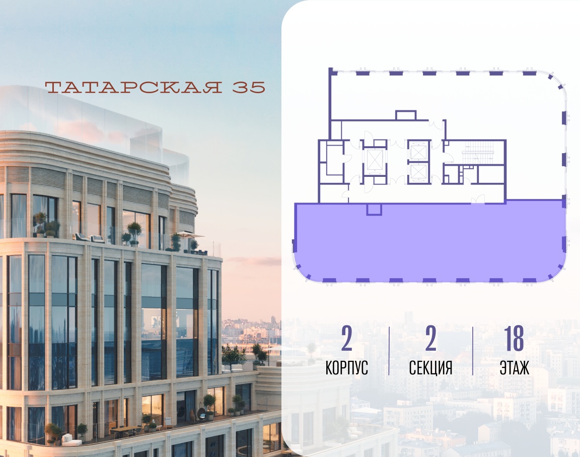 ТАТАРСКАЯ, 35 - новая архитектурная доминанта Замоскворечья, достопримечательность на фотопанорамах исторического центра Москвы. Элитный дом, созданный для тех, кто умеет смотреть далеко вперед, мыслить масштабно и воплощать собственный сценарий жизни.