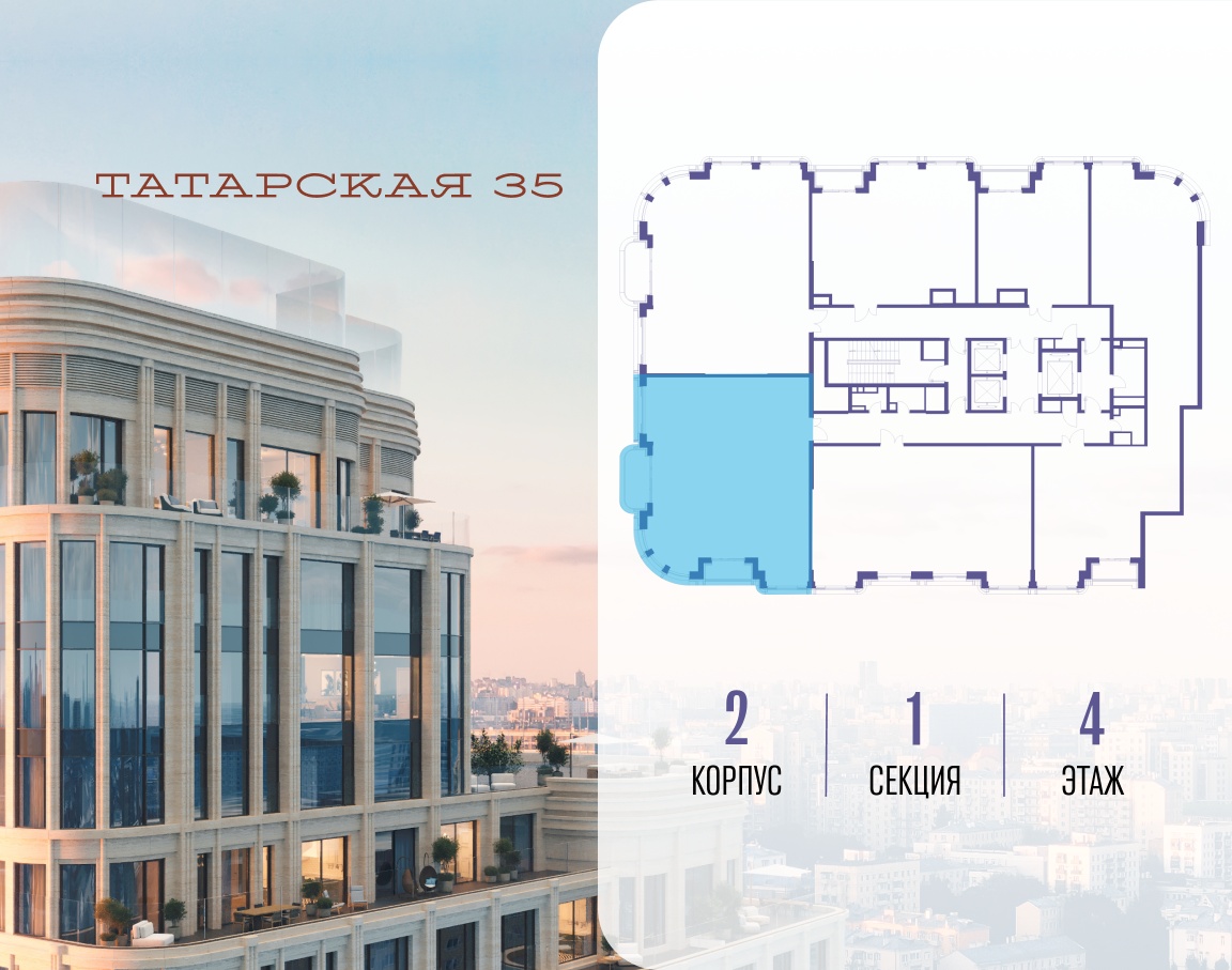 ТАТАРСКАЯ, 35 - новая архитектурная доминанта Замоскворечья, достопримечательность на фотопанорамах исторического центра Москвы. Элитный дом, созданный для тех, кто умеет смотреть далеко вперед, мыслить масштабно и воплощать собственный сценарий жизни.