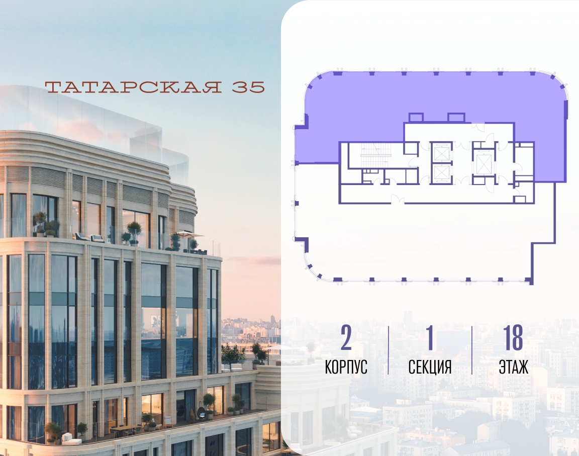 ТАТАРСКАЯ, 35 - новая архитектурная доминанта Замоскворечья, достопримечательность на фотопанорамах исторического центра Москвы. Элитный дом, созданный для тех, кто умеет смотреть далеко вперед, мыслить масштабно и воплощать собственный сценарий жизни.