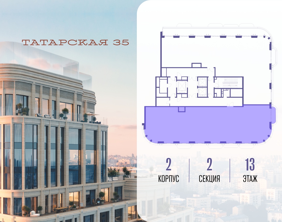 ТАТАРСКАЯ, 35 - новая архитектурная доминанта Замоскворечья, достопримечательность на фотопанорамах исторического центра Москвы. Элитный дом, созданный для тех, кто умеет смотреть далеко вперед, мыслить масштабно и воплощать собственный сценарий жизни.