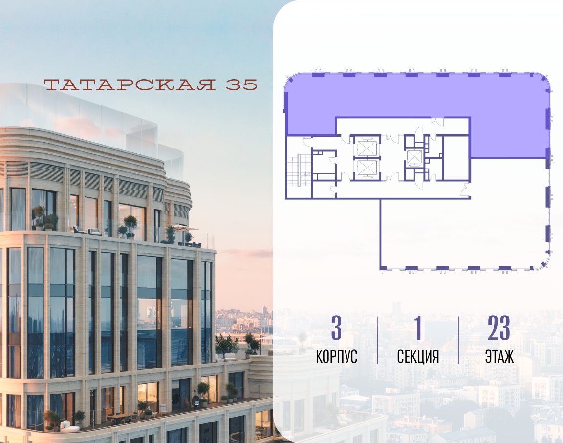 ТАТАРСКАЯ, 35 - новая архитектурная доминанта Замоскворечья, достопримечательность на фотопанорамах исторического центра Москвы. Элитный дом, созданный для тех, кто умеет смотреть далеко вперед, мыслить масштабно и воплощать собственный сценарий жизни.