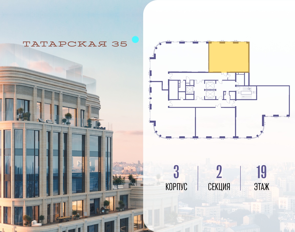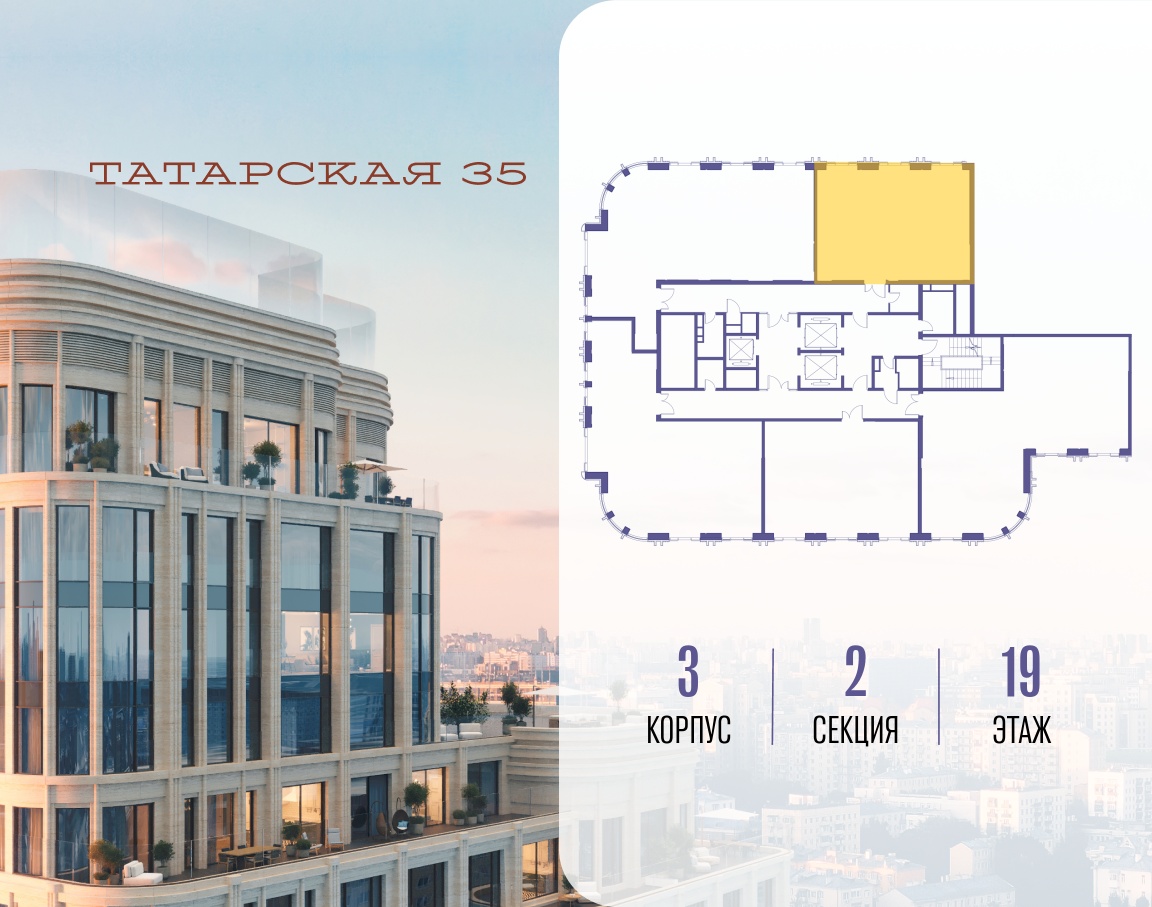 ТАТАРСКАЯ, 35 - новая архитектурная доминанта Замоскворечья, достопримечательность на фотопанорамах исторического центра Москвы. Элитный дом, созданный для тех, кто умеет смотреть далеко вперед, мыслить масштабно и воплощать собственный сценарий жизни.