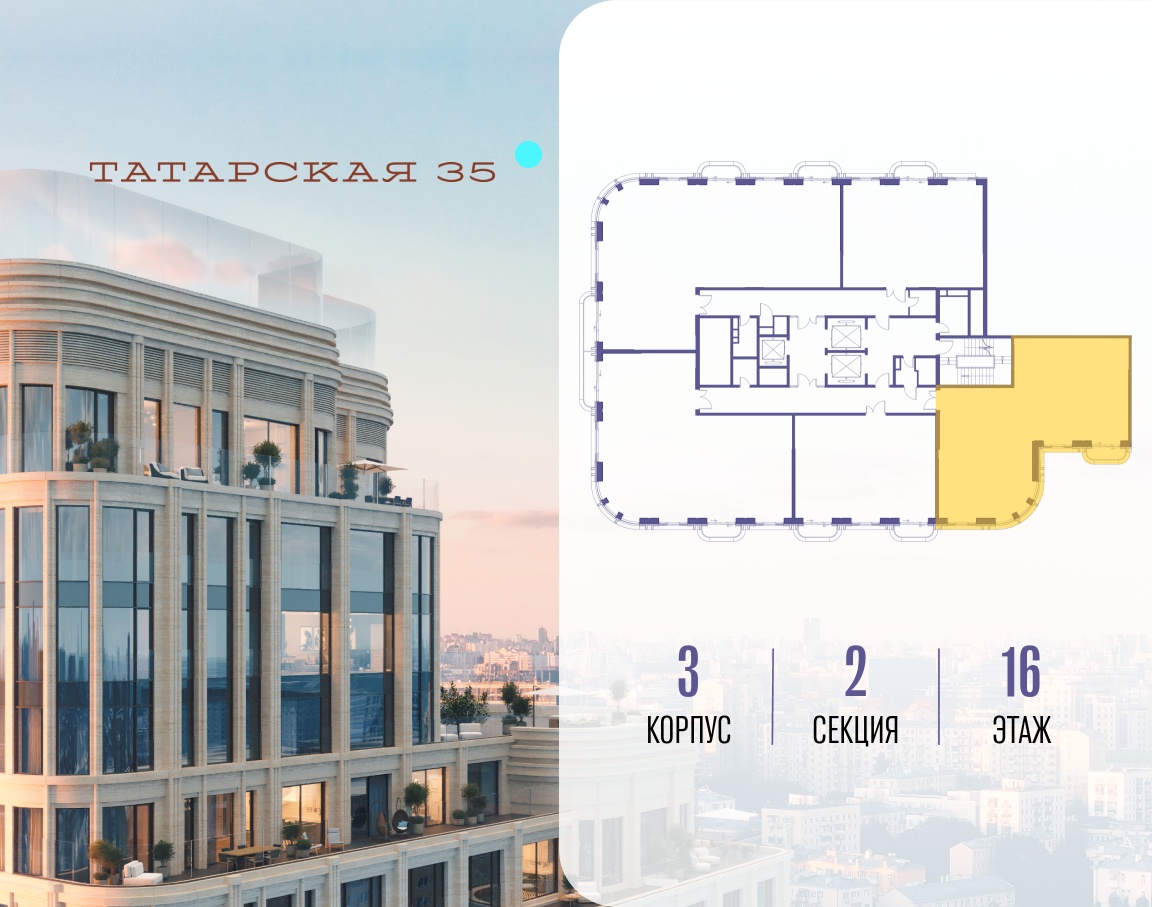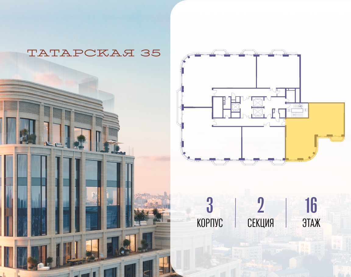 ТАТАРСКАЯ, 35 - новая архитектурная доминанта Замоскворечья, достопримечательность на фотопанорамах исторического центра Москвы. Элитный дом, созданный для тех, кто умеет смотреть далеко вперед, мыслить масштабно и воплощать собственный сценарий жизни.
