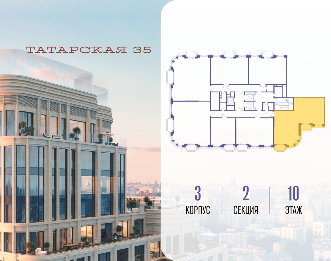 ТАТАРСКАЯ, 35 - новая архитектурная доминанта Замоскворечья, достопримечательность на фотопанорамах исторического центра Москвы. Элитный дом, созданный для тех, кто умеет смотреть далеко вперед, мыслить масштабно и воплощать собственный сценарий жизни.