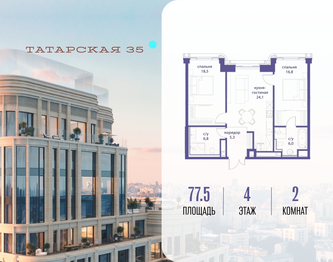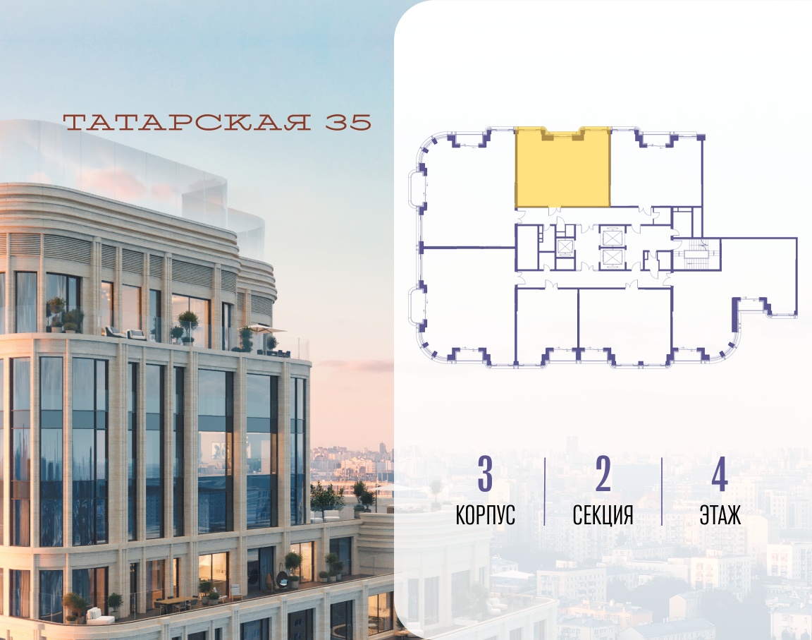 ТАТАРСКАЯ, 35 - новая архитектурная доминанта Замоскворечья, достопримечательность на фотопанорамах исторического центра Москвы. Элитный дом, созданный для тех, кто умеет смотреть далеко вперед, мыслить масштабно и воплощать собственный сценарий жизни.