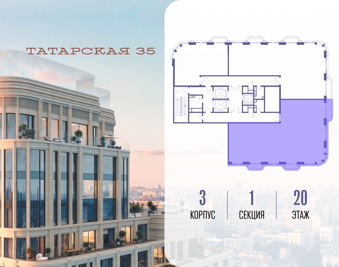 ТАТАРСКАЯ, 35 - новая архитектурная доминанта Замоскворечья, достопримечательность на фотопанорамах исторического центра Москвы. Элитный дом, созданный для тех, кто умеет смотреть далеко вперед, мыслить масштабно и воплощать собственный сценарий жизни.