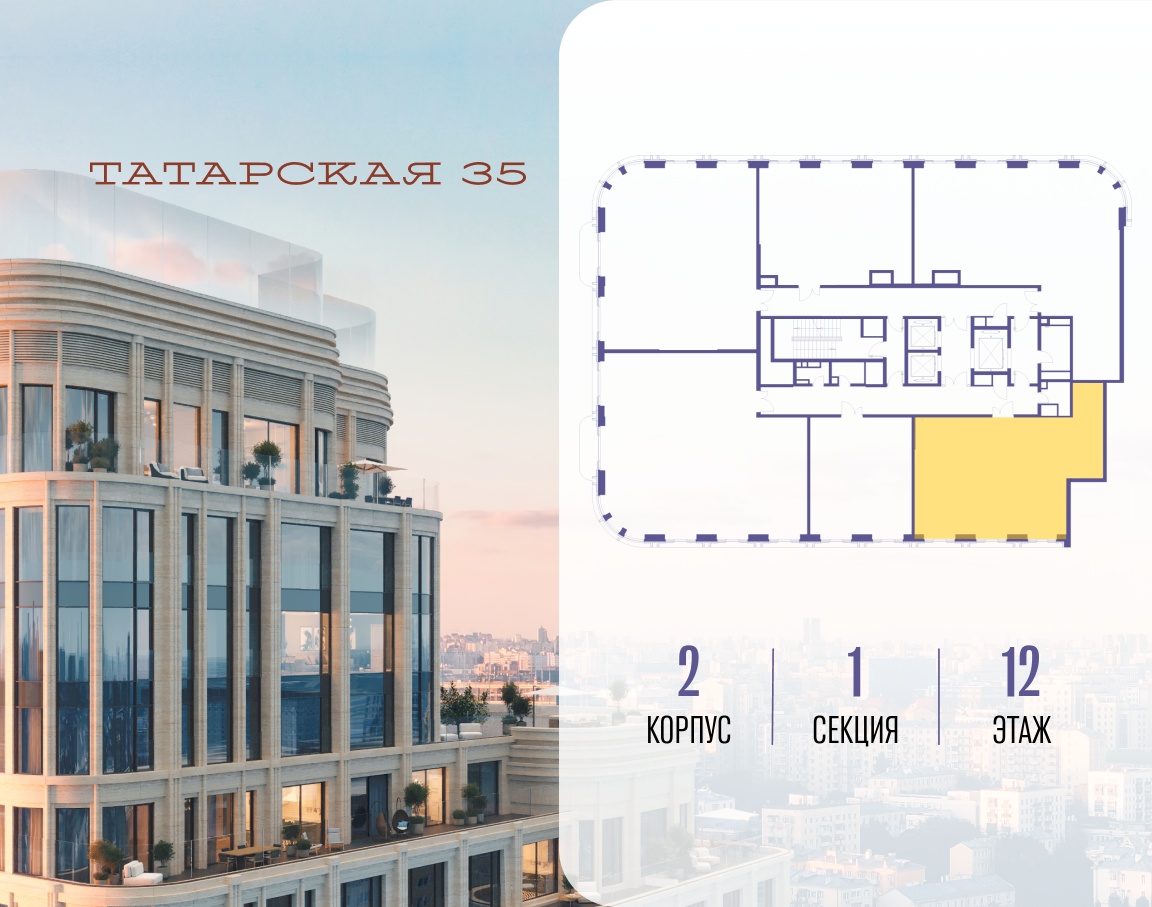 ТАТАРСКАЯ, 35 - новая архитектурная доминанта Замоскворечья, достопримечательность на фотопанорамах исторического центра Москвы. Элитный дом, созданный для тех, кто умеет смотреть далеко вперед, мыслить масштабно и воплощать собственный сценарий жизни.