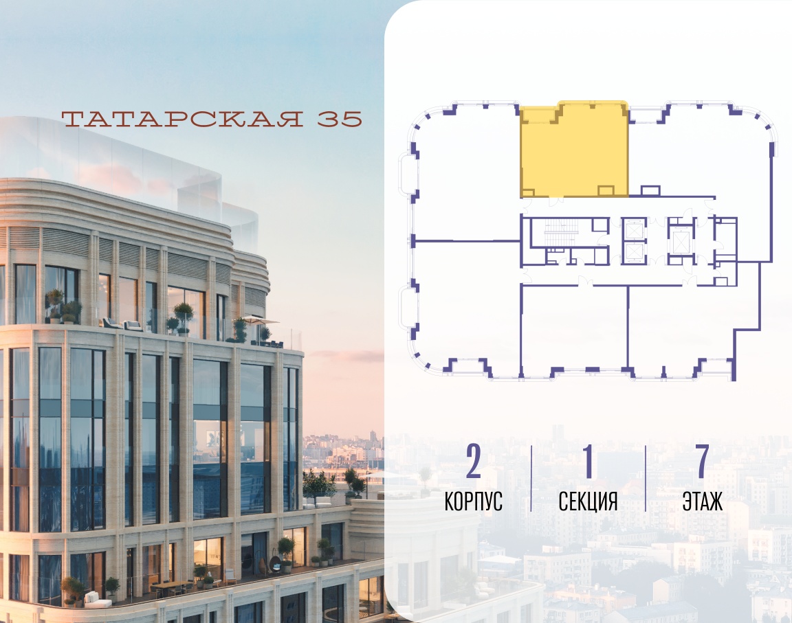 ТАТАРСКАЯ, 35 - новая архитектурная доминанта Замоскворечья, достопримечательность на фотопанорамах исторического центра Москвы. Элитный дом, созданный для тех, кто умеет смотреть далеко вперед, мыслить масштабно и воплощать собственный сценарий жизни.