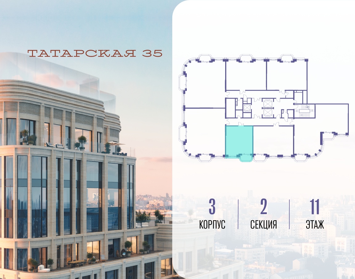 ТАТАРСКАЯ, 35 - новая архитектурная доминанта Замоскворечья, достопримечательность на фотопанорамах исторического центра Москвы. Элитный дом, созданный для тех, кто умеет смотреть далеко вперед, мыслить масштабно и воплощать собственный сценарий жизни.