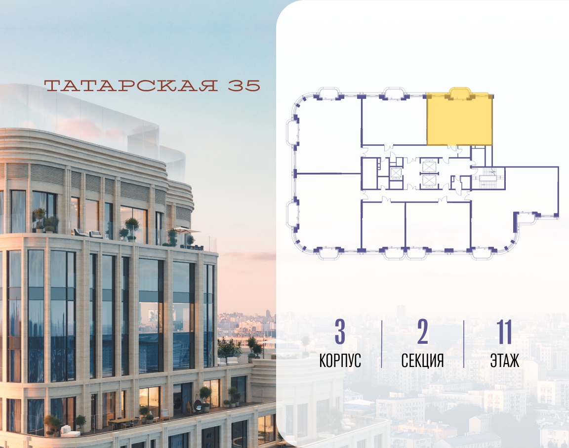 ТАТАРСКАЯ, 35 - новая архитектурная доминанта Замоскворечья, достопримечательность на фотопанорамах исторического центра Москвы. Элитный дом, созданный для тех, кто умеет смотреть далеко вперед, мыслить масштабно и воплощать собственный сценарий жизни.