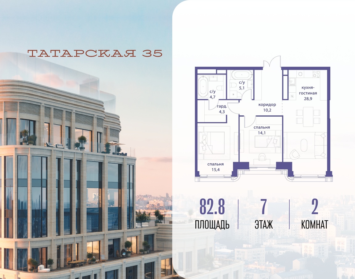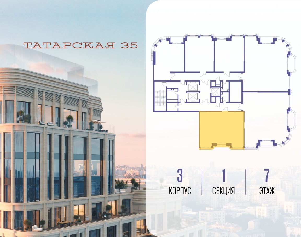 ТАТАРСКАЯ, 35 - новая архитектурная доминанта Замоскворечья, достопримечательность на фотопанорамах исторического центра Москвы. Элитный дом, созданный для тех, кто умеет смотреть далеко вперед, мыслить масштабно и воплощать собственный сценарий жизни.