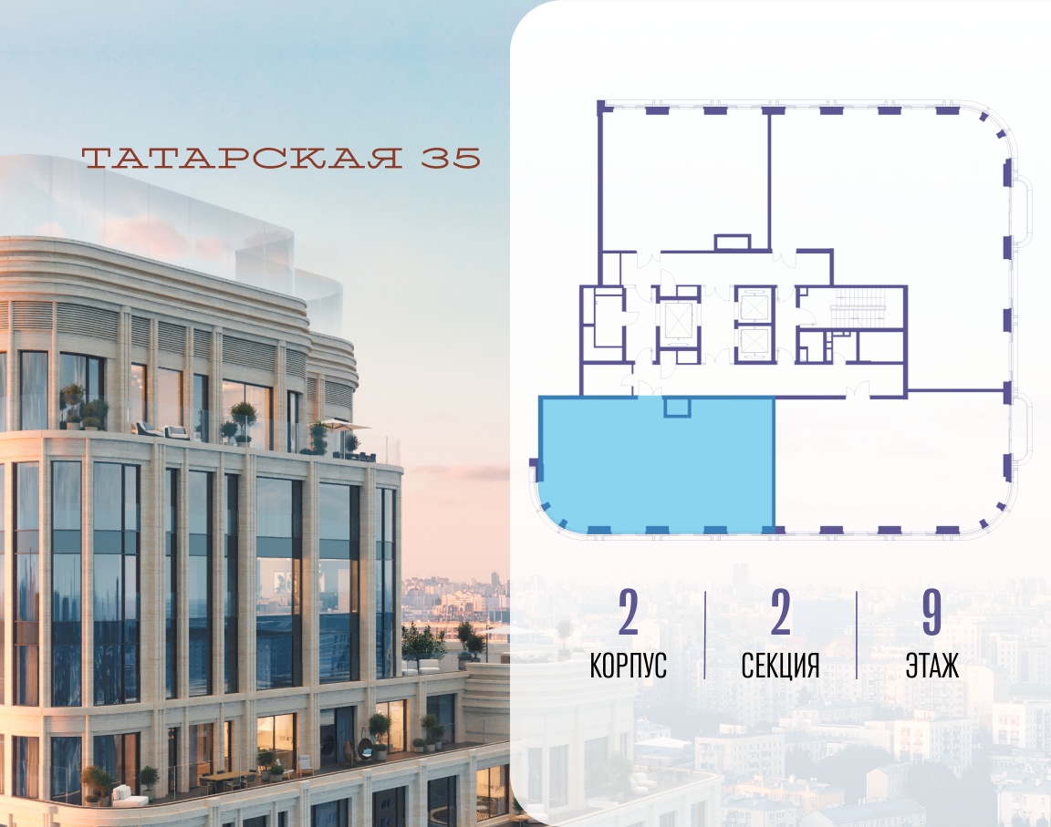 ТАТАРСКАЯ, 35 - новая архитектурная доминанта Замоскворечья, достопримечательность на фотопанорамах исторического центра Москвы. Элитный дом, созданный для тех, кто умеет смотреть далеко вперед, мыслить масштабно и воплощать собственный сценарий жизни.