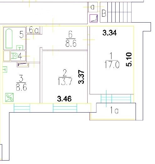 | Жилая площадь | 30.7 м2 | Площадь комнат | 17 + 13.7 м2 |