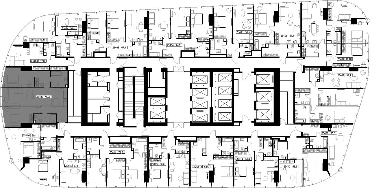 | Этаж | 54 из 90 | Площадь кухни | 32.6 м2 |