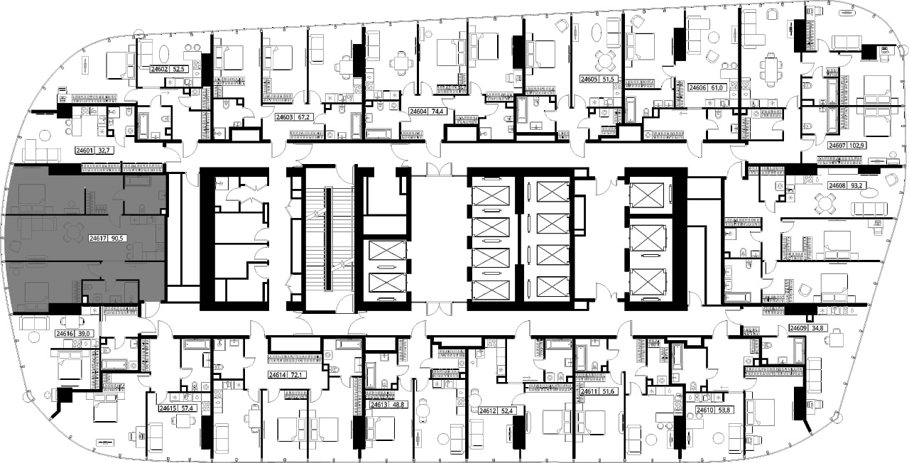 | Этаж | 46 из 90 | Площадь кухни | 32.6 м2 |