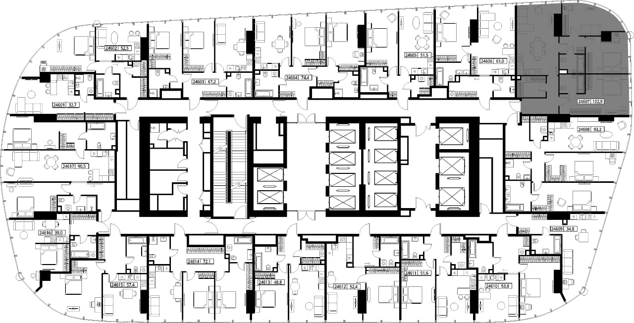 | Этаж | 46 из 90 | Площадь кухни | 26.6 м2 |