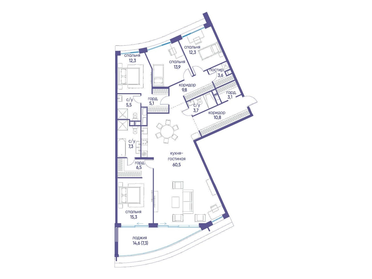 | Этаж | 10 из 19 | Площадь кухни | 60.5 м2 |