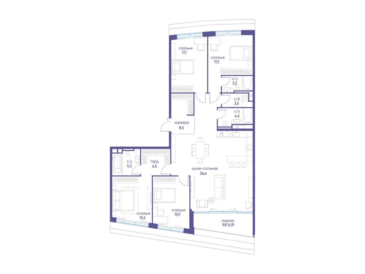 | Этаж | 18 из 19 | Площадь кухни | 56.6 м2 |