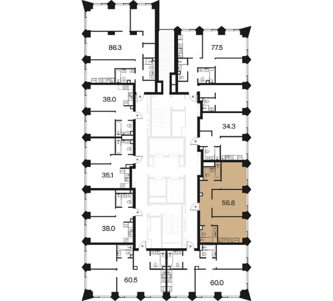 | Площадь кухни | 12.5 м2 | Жилая площадь | 25.4 м2 |