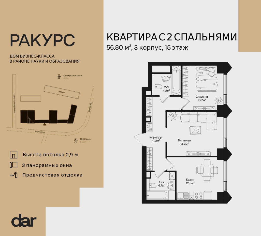атмосфере интеллектуальной среды,Ракурс разместился в районе науки и окружен исследовательскими институтами и образовательными учреждениями, при этом на территории построена своя школа с уникальной концепцией. Расположенный на пересечении улиц Маршала Бирюзова и Берзарина, недалеко от станций метро «Октябрьское поле» и «Зорге», дом угождает транспортной доступностью автомобилистам и пешеходам. Инфраструктура же района создана с заботой о людях: здесь много парков, кафе и других уютных мест для отдыха.