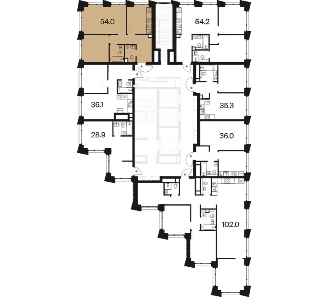 | Площадь кухни | 10.3 м2 | Жилая площадь | 28.4 м2 |
