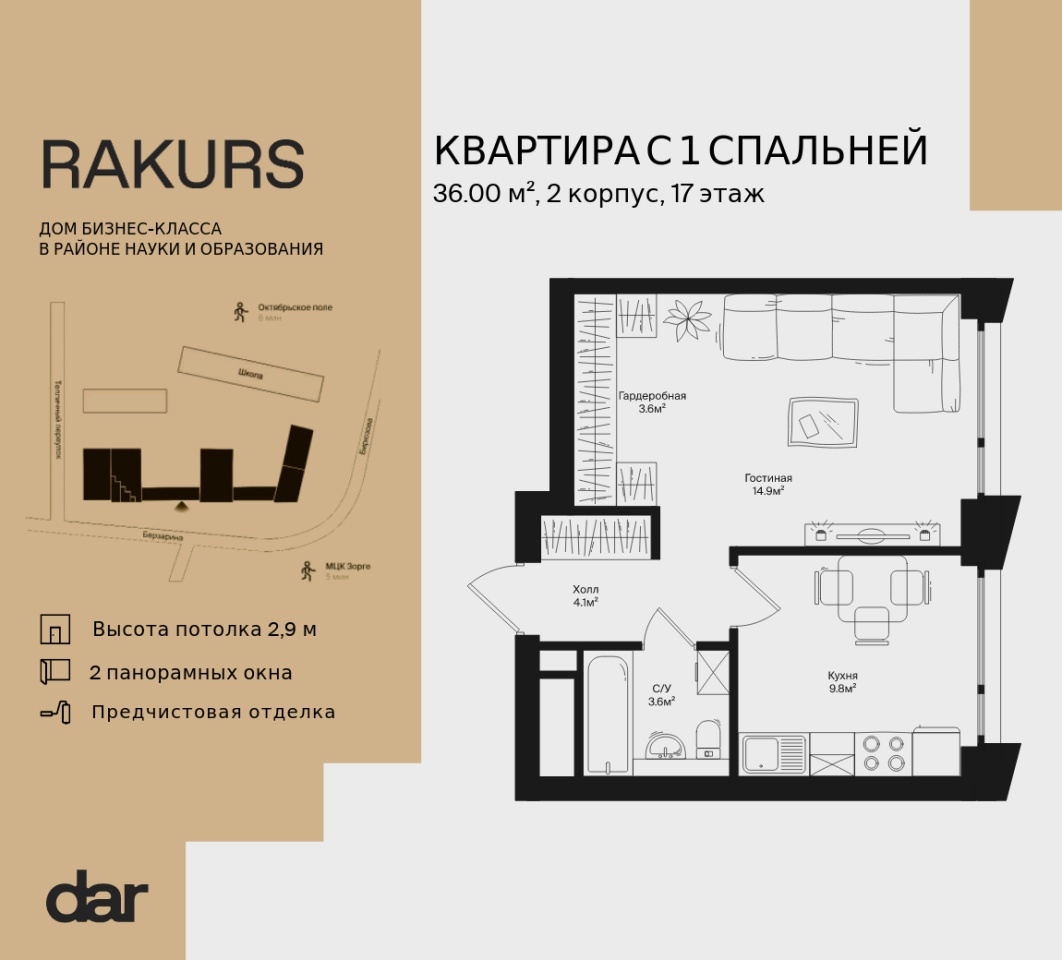 атмосфере интеллектуальной среды,Ракурс разместился в районе науки и окружен исследовательскими институтами и образовательными учреждениями, при этом на территории построена своя школа с уникальной концепцией. Расположенный на пересечении улиц Маршала Бирюзова и Берзарина, недалеко от станций метро «Октябрьское поле» и «Зорге», дом угождает транспортной доступностью автомобилистам и пешеходам. Инфраструктура же района создана с заботой о людях: здесь много парков, кафе и других уютных мест для отдыха.