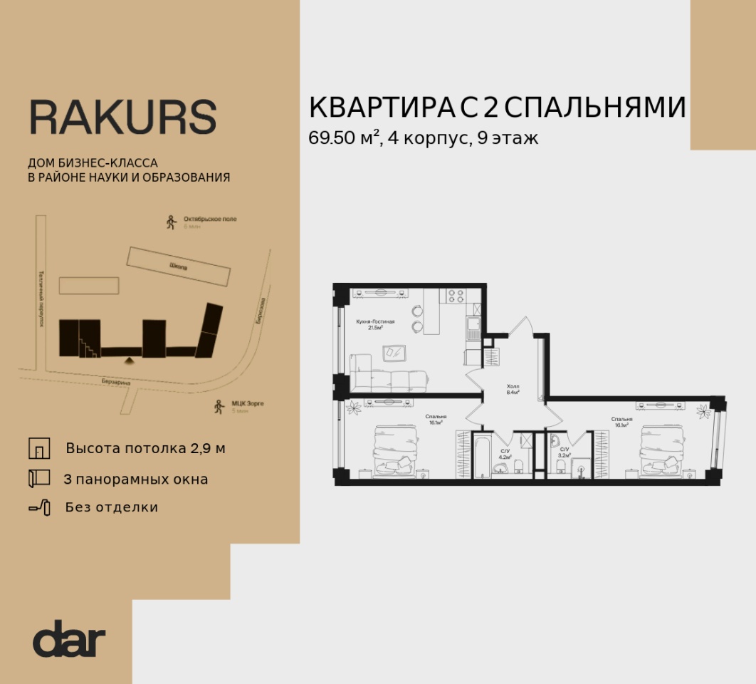 атмосфере интеллектуальной среды,Ракурс разместился в районе науки и окружен исследовательскими институтами и образовательными учреждениями, при этом на территории построена своя школа с уникальной концепцией. Расположенный на пересечении улиц Маршала Бирюзова и Берзарина, недалеко от станций метро «Октябрьское поле» и «Зорге», дом угождает транспортной доступностью автомобилистам и пешеходам. Инфраструктура же района создана с заботой о людях: здесь много парков, кафе и других уютных мест для отдыха.