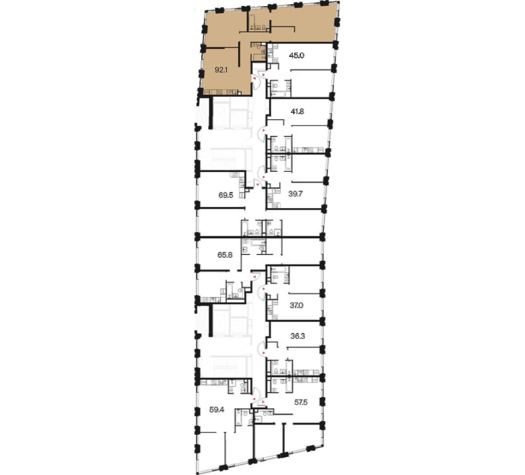 | Площадь кухни | 21.9 м2 | Жилая площадь | 43.9 м2 |