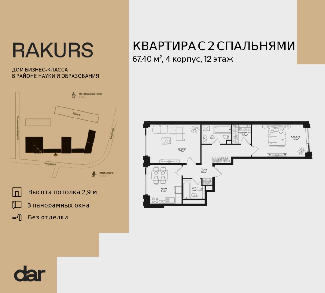 атмосфере интеллектуальной среды,Ракурс разместился в районе науки и окружен исследовательскими институтами и образовательными учреждениями, при этом на территории построена своя школа с уникальной концепцией. Расположенный на пересечении улиц Маршала Бирюзова и Берзарина, недалеко от станций метро «Октябрьское поле» и «Зорге», дом угождает транспортной доступностью автомобилистам и пешеходам. Инфраструктура же района создана с заботой о людях: здесь много парков, кафе и других уютных мест для отдыха.