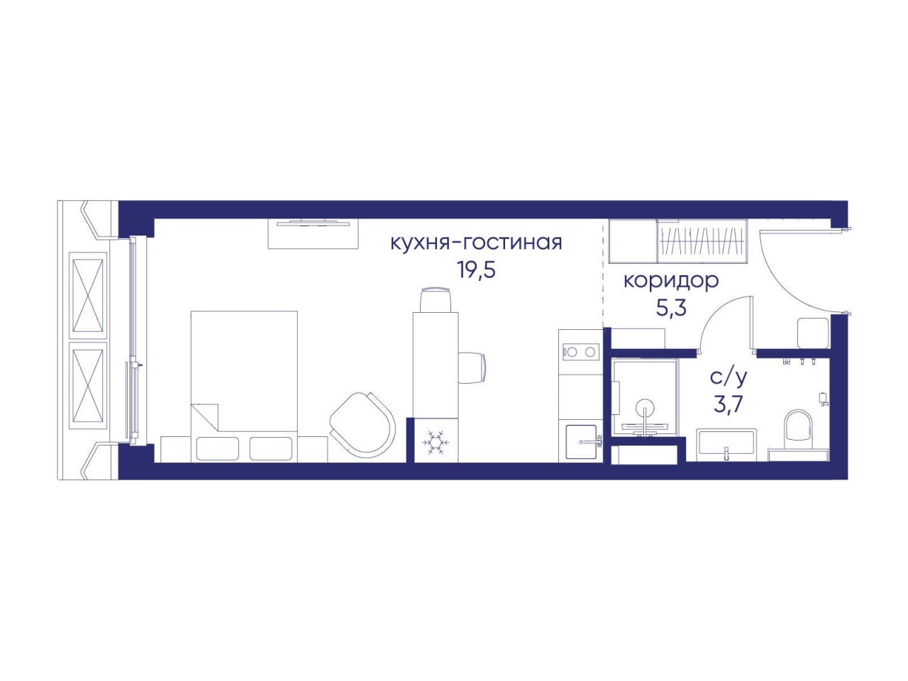 | Площадь кухни | 5 м2 | Жилая площадь | 14.5 м2 |