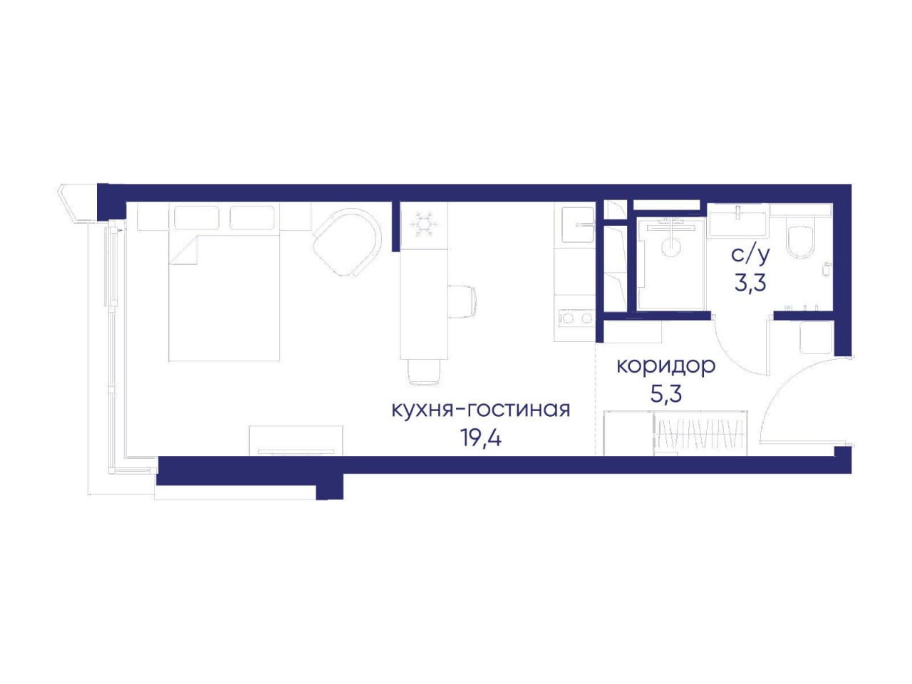 | Площадь кухни | 5 м2 | Жилая площадь | 15.4 м2 |