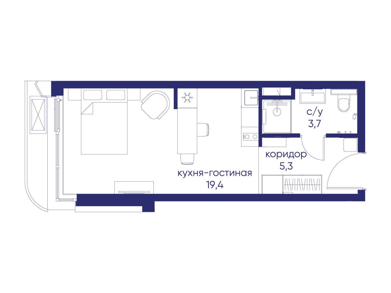 | Площадь кухни | 5 м2 | Жилая площадь | 14.4 м2 |